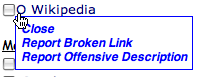 You can report offensive language by moving your pointer to the right of the checkboxes. A O will appear that you can click on to get a menu of options. You can also report broken websites or searches this way.