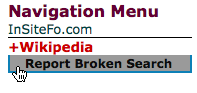 You can report a broken webpage or search by moving your pointer over the + in the navigation menu and selecting "Report Broken Search".